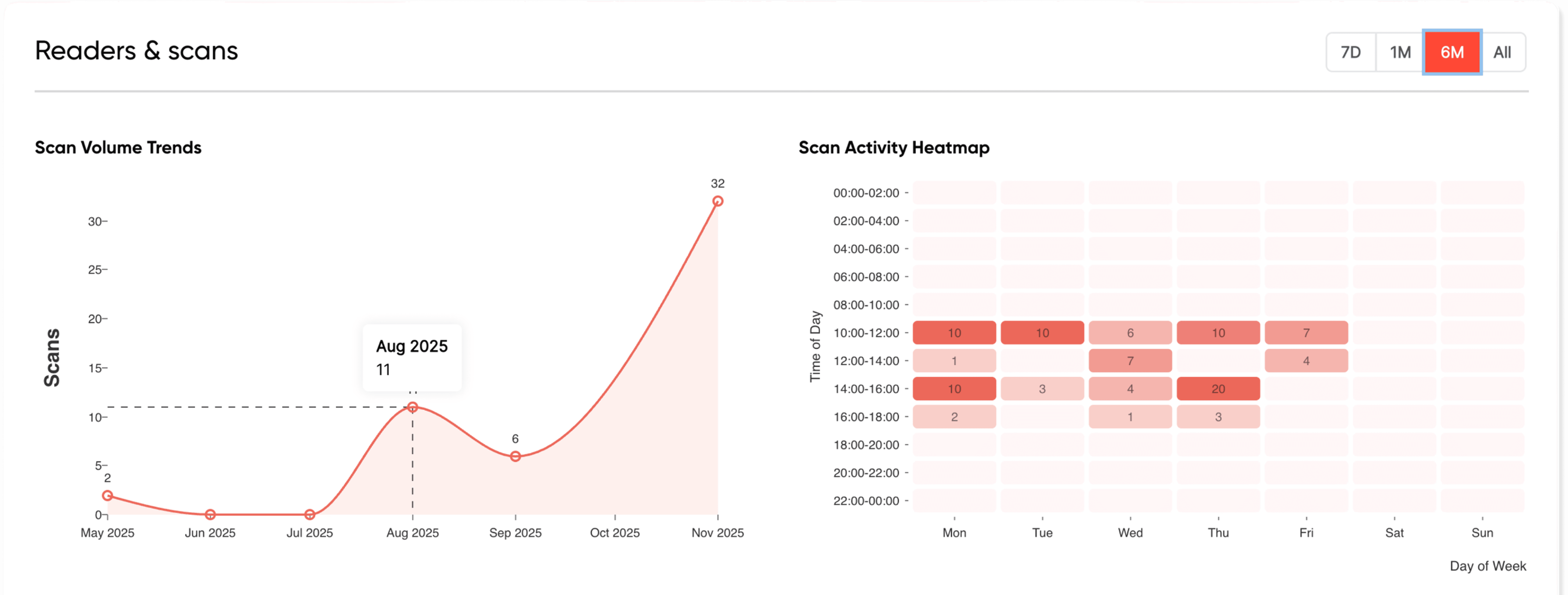 Combine scan activity with analytics to understand visit patterns and peak times.